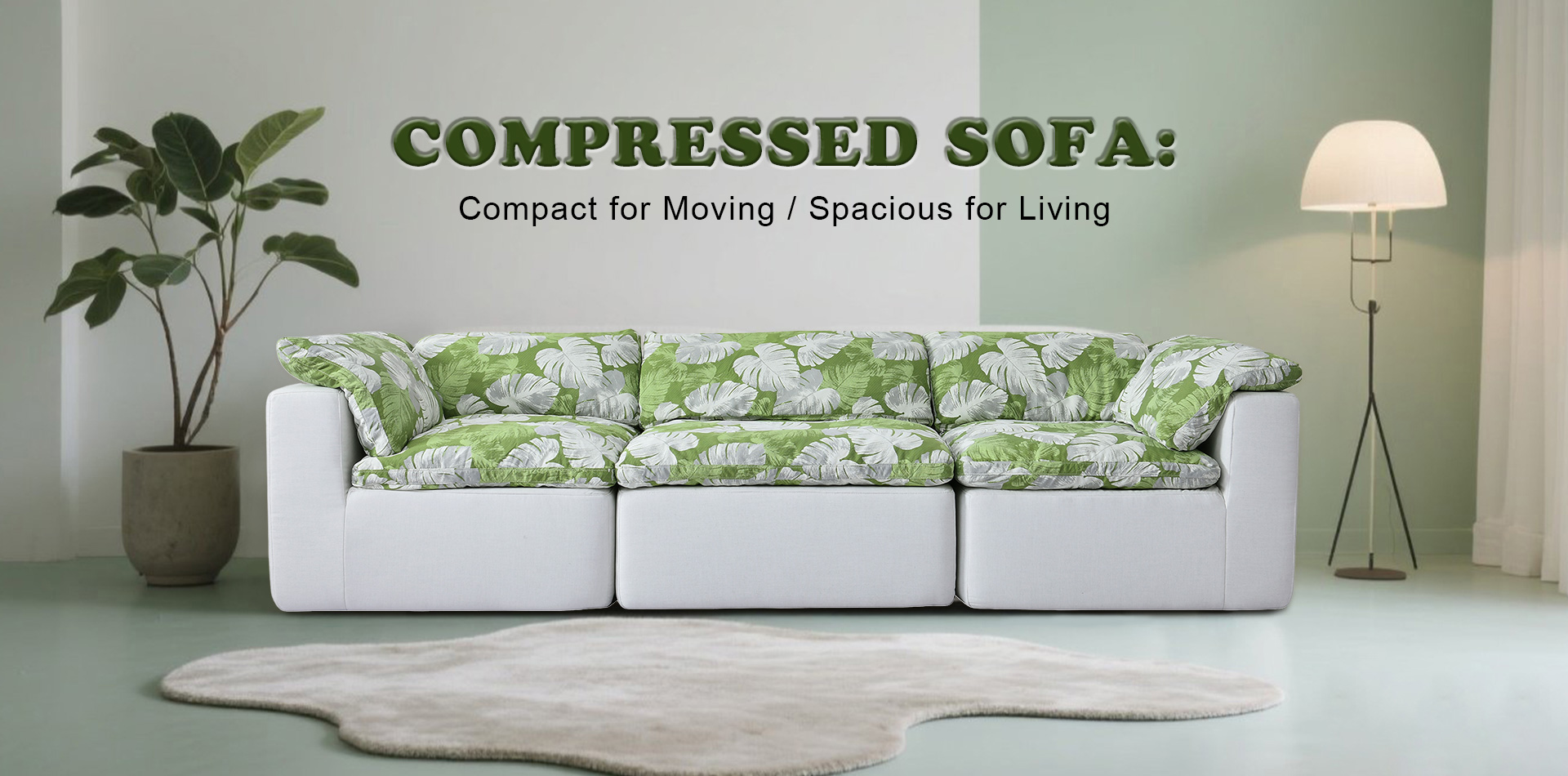 省スペースの圧縮ソファ: 簡単な移動と優れた快適性 この圧縮ソファは、究極の持ち運びやすさと妥協のない快適さを兼ね備えています。真空圧縮技術を利用して体積を最大 70% 削減し、輸送や保管が楽になるため、狭いスペースや頻繁に移動する人に最適です。コンパクトな納品にもかかわらず、ソファは高密度の環境に優しいフォームと肌に優しく通気性のある生地を使用しており、人間工学に基づいたサポートを提供し、形状を素早く復元して快適さが長持ちします。モジュール式ソファや折りたたみ式ソファベッドなどの多彩なデザインがあり、リビングルーム、スタジオ、賃貸アパートなどに適応します。都市部に住む人、環境に配慮した世帯、手間のかからないスペース効率の良い家具ソリューションを求める人に最適です。