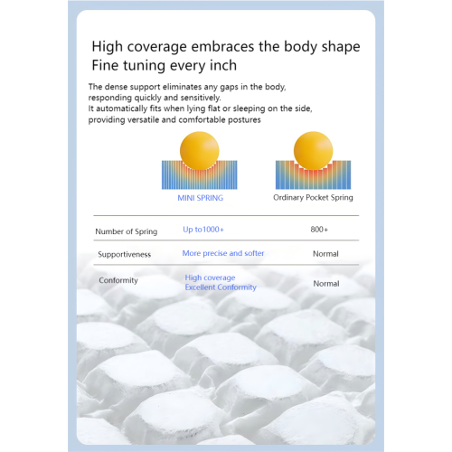 高抵抗性フォームと通気性のあるシェニールファブリックを組み合わせた多層構造は、筋肉の圧力を最小限に抑え、血液循環を促進し、身体的疲労を緩和し、回復的な休息をもたらすことができます。さらに、 AIスマートベッドマットレスもあなたにとって良い選択であり、快適な睡眠体験をもたらすことができます。